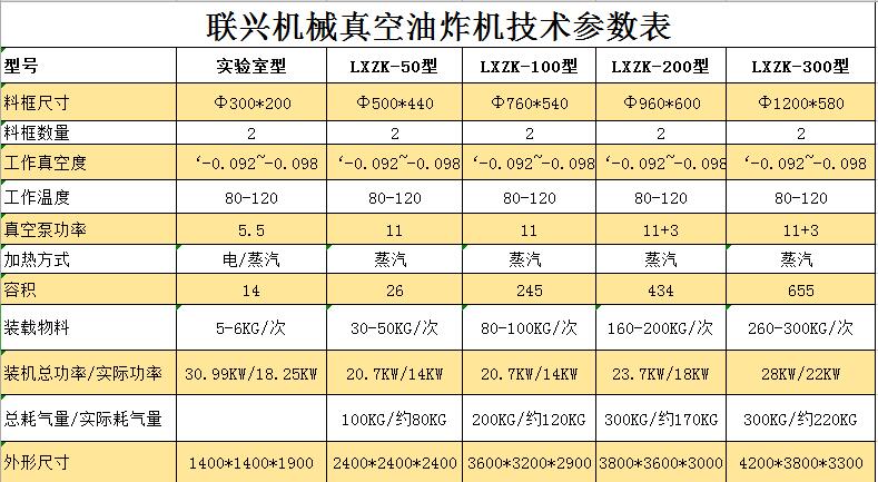 聯興機械香菇脆真空油炸機技術參數表